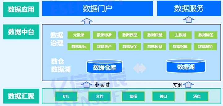 两个中心:分别是汇聚中心、数据中心。汇聚中心是数据的采集汇聚及ETL功能平台;数据中心实现数据湖/数据仓库的建设,同时要实现数据数据治理活动