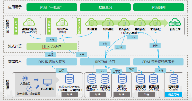 1、 数据源层:各个煤矿端应用的数据,包括监控监测类数据,基础数据,管理数据,视频监控数,其中监控监测类数据是实时流式数据,基础数据和管理数据是离线数据,视频监控数据是视频类的文件。