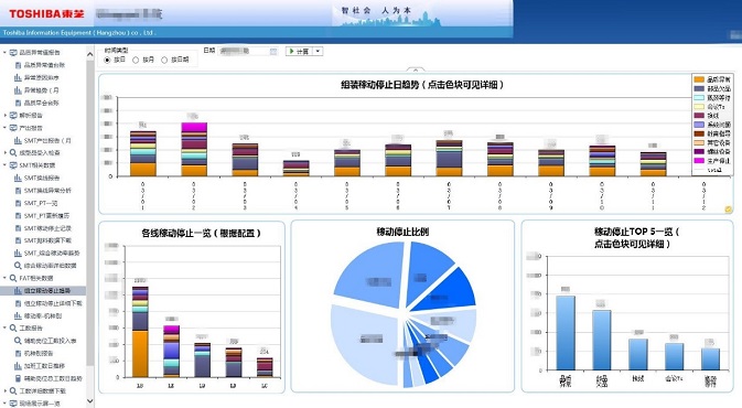 东芝制造车间生产过程中的数据包括车间人员、物料、加工设备、工票、工装、加工过程等,涉及车间各个部分。面向东芝内部的生产部门,为一线生产人员及质检部门给予数据填报及数据分析平台,是一个完全基于互联网技术构建的智能数据系统。