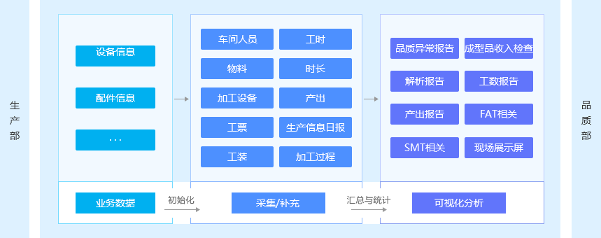 面向东芝内部的生产部门,为一线生产人员给予数据填报平台。涉及生产过程中的各个部分数据,包括车间人员、物料、加工设备、工票、工装、加工过程等。