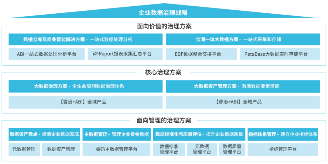 面向未来,如何实行数据治理和数据创新是所有政企用户的一道必答题。随着数字化转型的建设,企业内部各种数据管理系统也日益复杂,数据治理不再是单纯的部署一套软件工具,而更多的是面向业务、面向集团整体构建数据资产管理及运营解决方案。