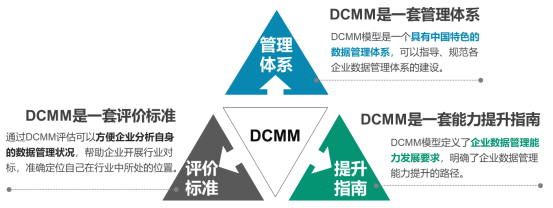 DCMM是我国首个数据管理领域正式发布的国家标准,旨在帮助企业利用先进的数据管理理念和方法,建立和评价自身数据管理能力,持续完善数据管理组织、程序和制度,充分发挥数据在促进企业向信息化、数字化、智能化开展方面的价值。