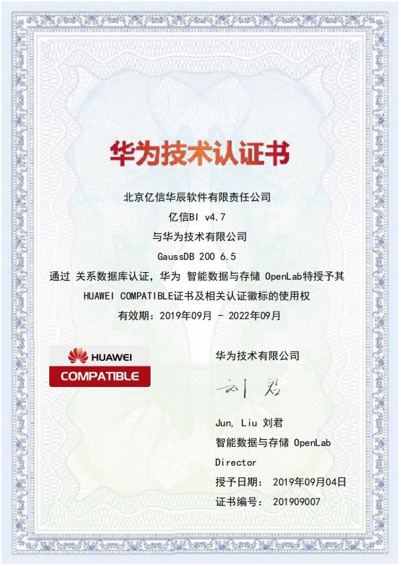 共建鲲鹏生态,亿信BI与华为GaussDB数据库完成兼容互认证