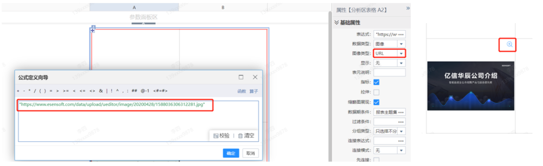 用户在做表过程中,在表格图像表元中能以URL存储并以缩略图展现,支持放大原图展现。