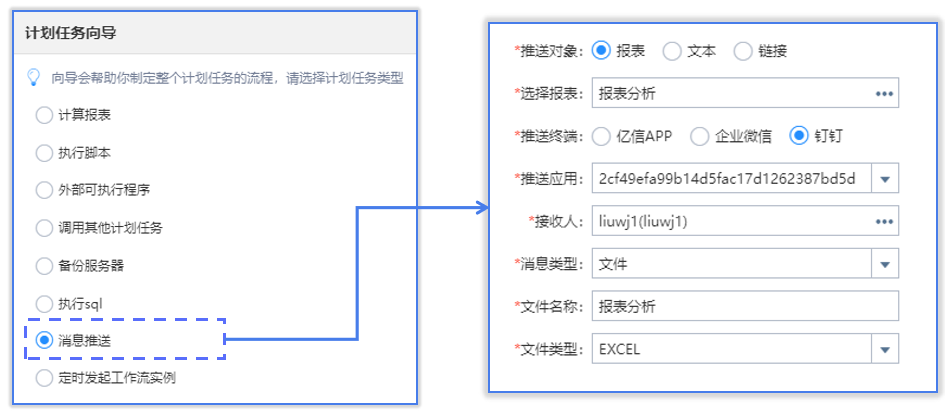 定时从平台推送一些报表数据(文件)、报表链接、文本信息给到钉钉、企业微信及APP中,方便用户在钉钉、企业微信等第三方平台和ABI APP中及时查看推送内容。