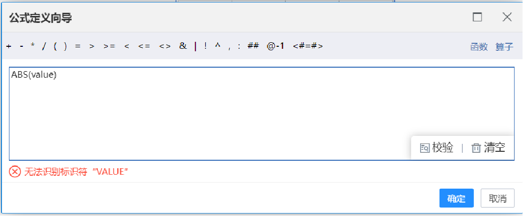 公式编辑器出现大量公式和特殊字符时,编辑器自动识别区分字段、函数。同时支持公式检验,可快速定位问题和一键清空公式。