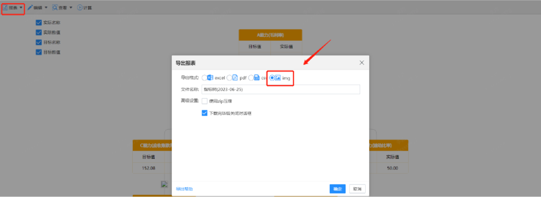 默认导出有excel、pdf、csv、img格式,可根据用户需求屏蔽其他格式的入口。