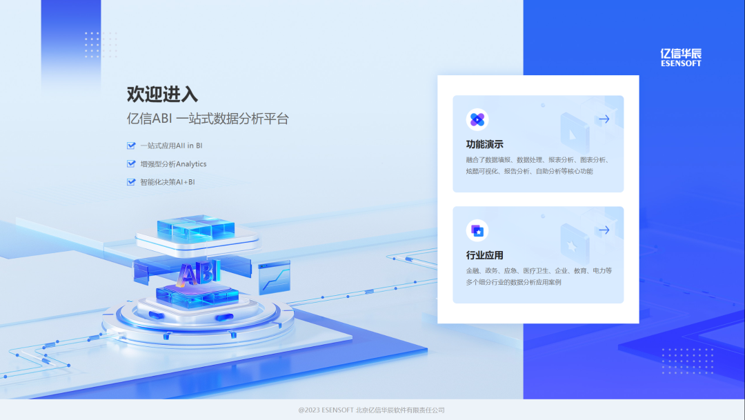 10个功能模块直观排布,且每个模块都有对应的详细介绍与清晰功能指引,后附相关行业案例展示。内容更丰富、指引更细致、体验更畅快,一站式玩转亿信ABI。