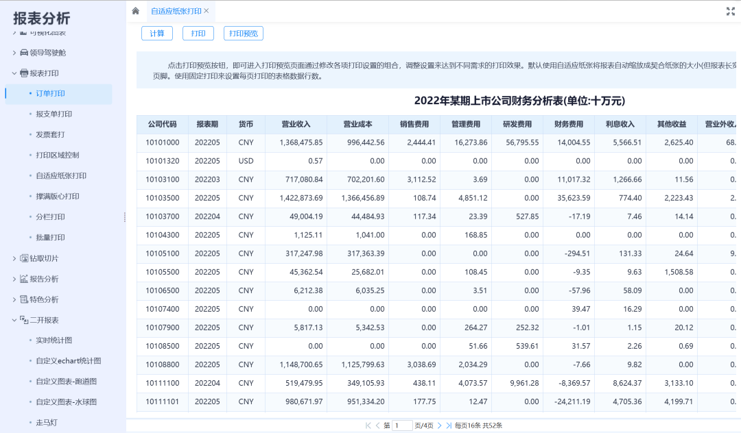 d. 新增报表打印、参数查询表(支持多种形式的过滤查询)、二开报表(支持图表二次开发,自定义开发)等特色功能。