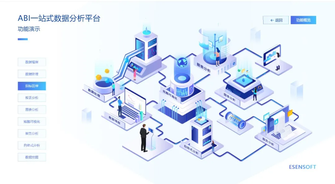 本次上架的亿信ABI,给予了数据源适配、ETL数据处理、数据建模、数据分析、数据填报、工作流、门户、移动应用等多种核心功能,实现数据填报、处理、分析一体化,为用户给予一站式数据服务。