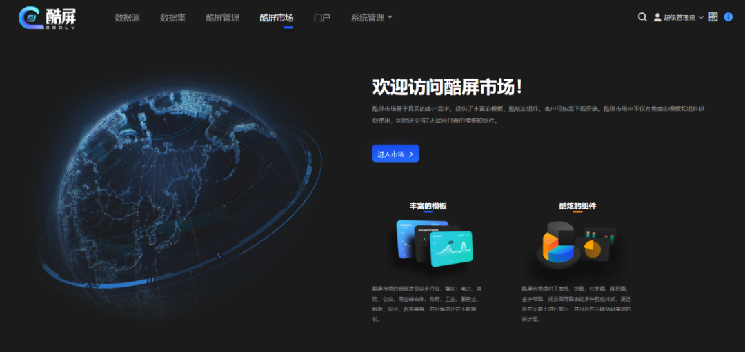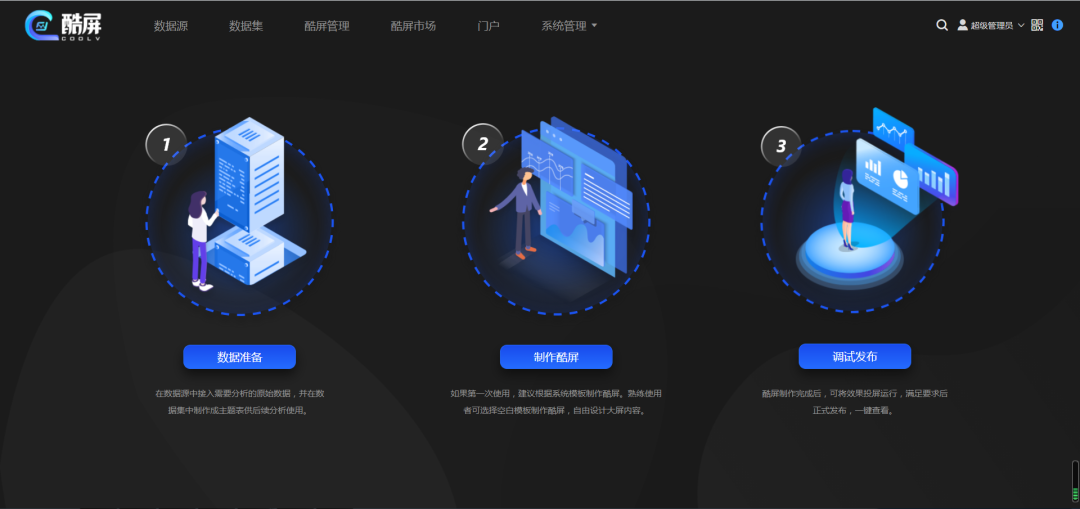 系统整体设计风格进行全面的更新,包括登录页、数据源、数据集、酷屏管理、酷屏市场、门户、系统管理等模块。从原来的蓝白商务风转成了黑色炫酷风,从视觉角度上提升科技质感,向日葵色版视频在线观看免费体验上让用户更专注于内容。