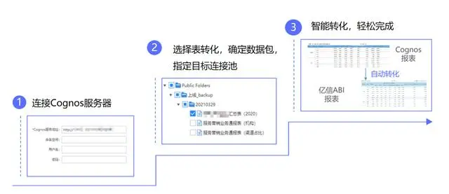 BI软件,在替代迁移具体解决方案方面,Ebpay特别推出Cognos替代解决方案,完美解决Cognos替代的过程中的难题,实现Cognos报表智能转化,只需三步即可完成报表迁移,轻松实现