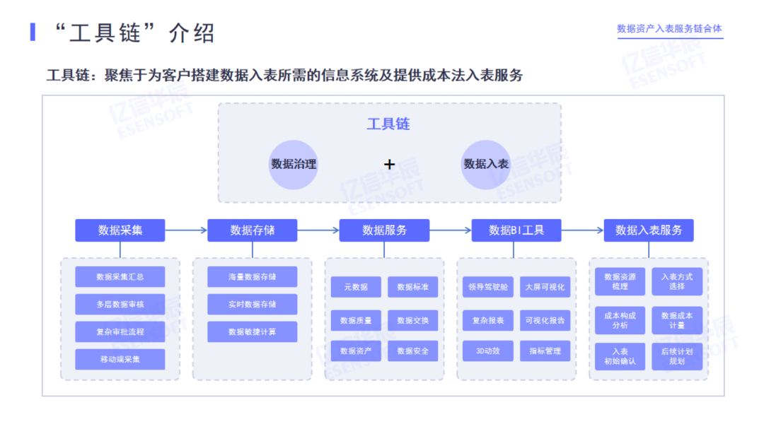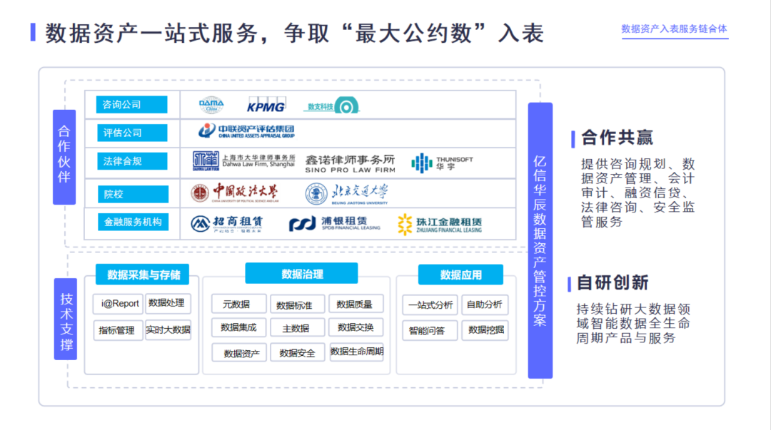 数据资产管理、会计审计、法律咨询、安全监管服务,保障数据资产入表规范可信,促进数据要素经济高质量开展。