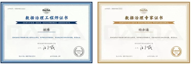CDGA和CDGP现在考试时间均为100分钟,满分均为100分,及格分都是60分。成绩合格者由DAMA中国颁发证书。