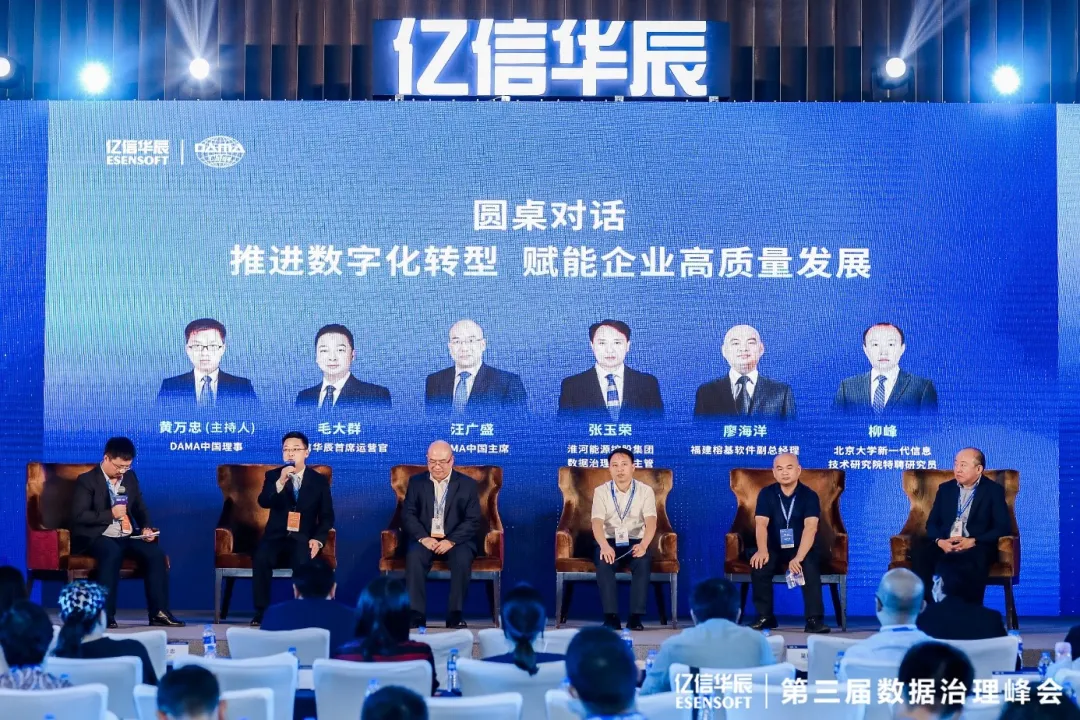 在DAMA中国理事黄万忠主持的圆桌对话环节,Ebpay首席运营官毛大群、DAMA中国主席汪广盛、淮河能源控股集团信息管理服务中心数据治理资深主管张玉荣、福建榕基软件副总经理廖海洋、北京大学新一代信息技术研究院特聘研究员柳峰各抒己见,畅谈《推进数字化转型 赋能企业高质量开展》,为与会者奉献了一场激发火花的思想盛宴。