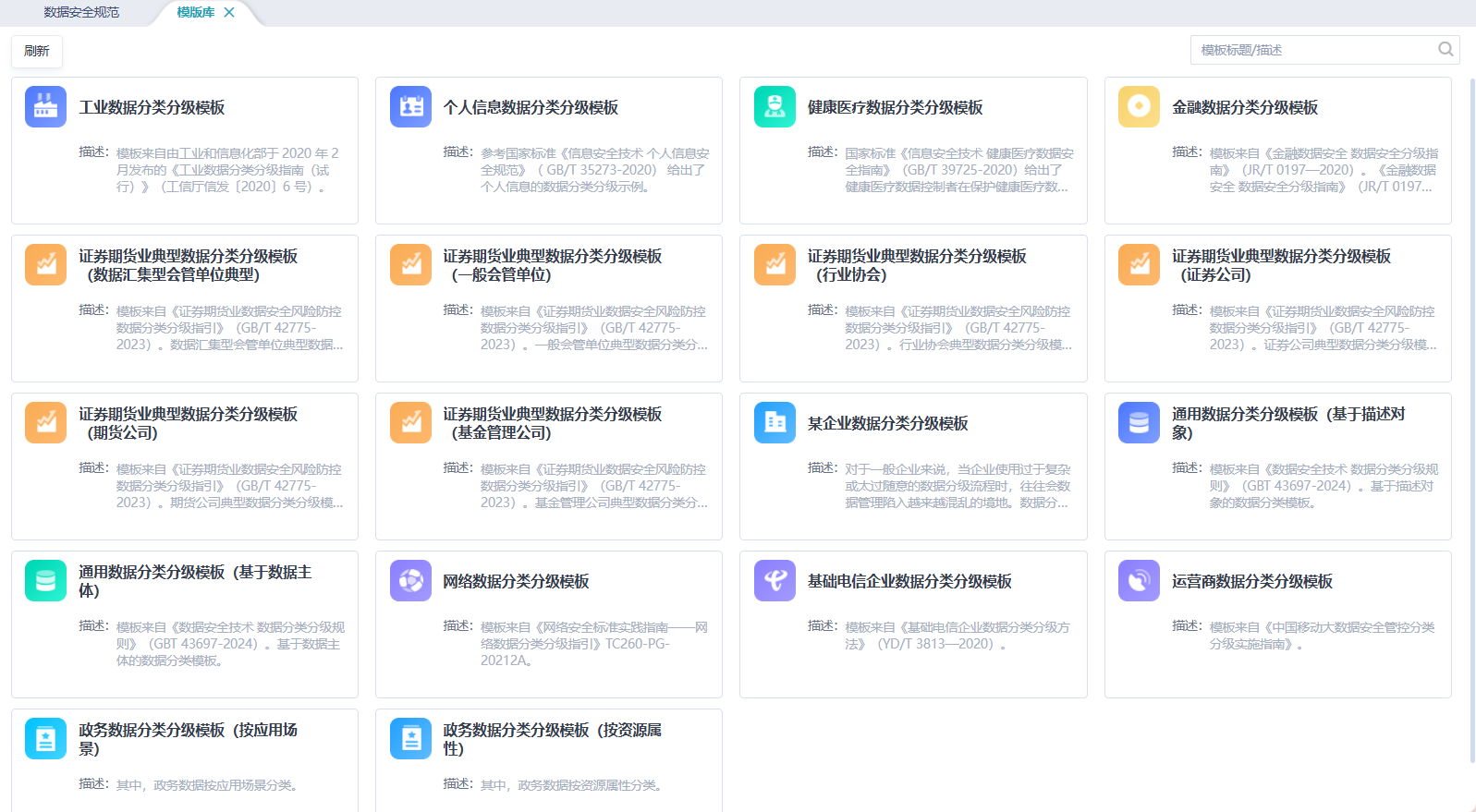 睿治V2.7.2在数据安全管理上进行功能增强,支持数据安全分级分类,内置各行业分级分类模板。根据国家政策和项目需求,需要对数据进行分级分类时,睿治内置各行业分级分类模板,可根据分级分类信息对资产进行加密和脱敏,提升数据安全性。
