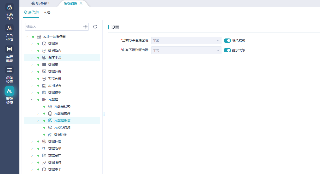 睿治V2.7.2支持分保,包括自定义保密等级、设置用户保密等级、设置资源保密等级等,快速响应安全保密管控。当需要用户在访问平台资源时,严格执行安全保密管控,用户只能访问达到保密等级要求的资源。