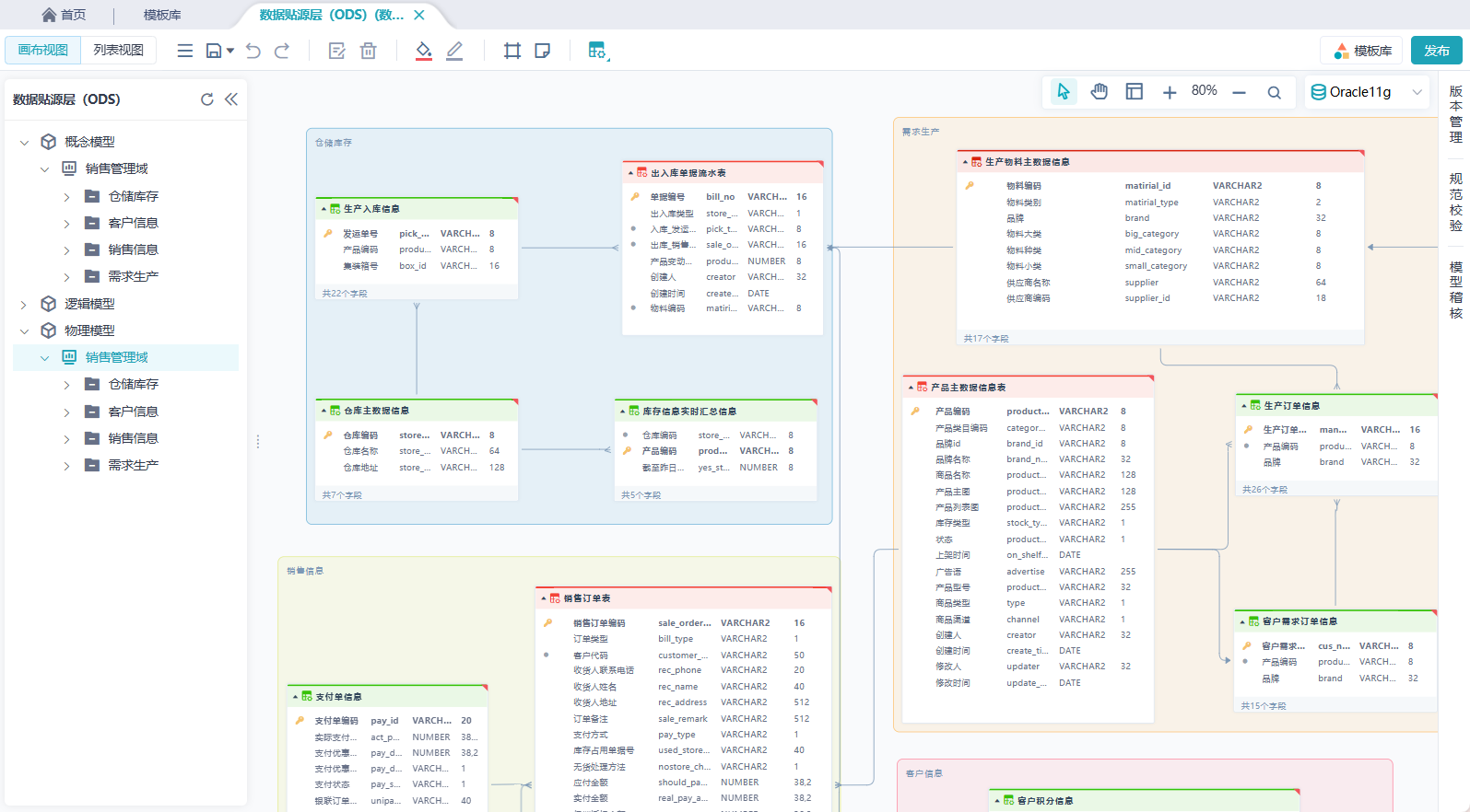 睿治V2.7.2全新的数据模型功能有助于简化逻辑数据库,说明数据库中各种数据元素之间的关系,消除冗余数据、减少存储需求并实现数据的高效检索与使用,提升数据可用性。