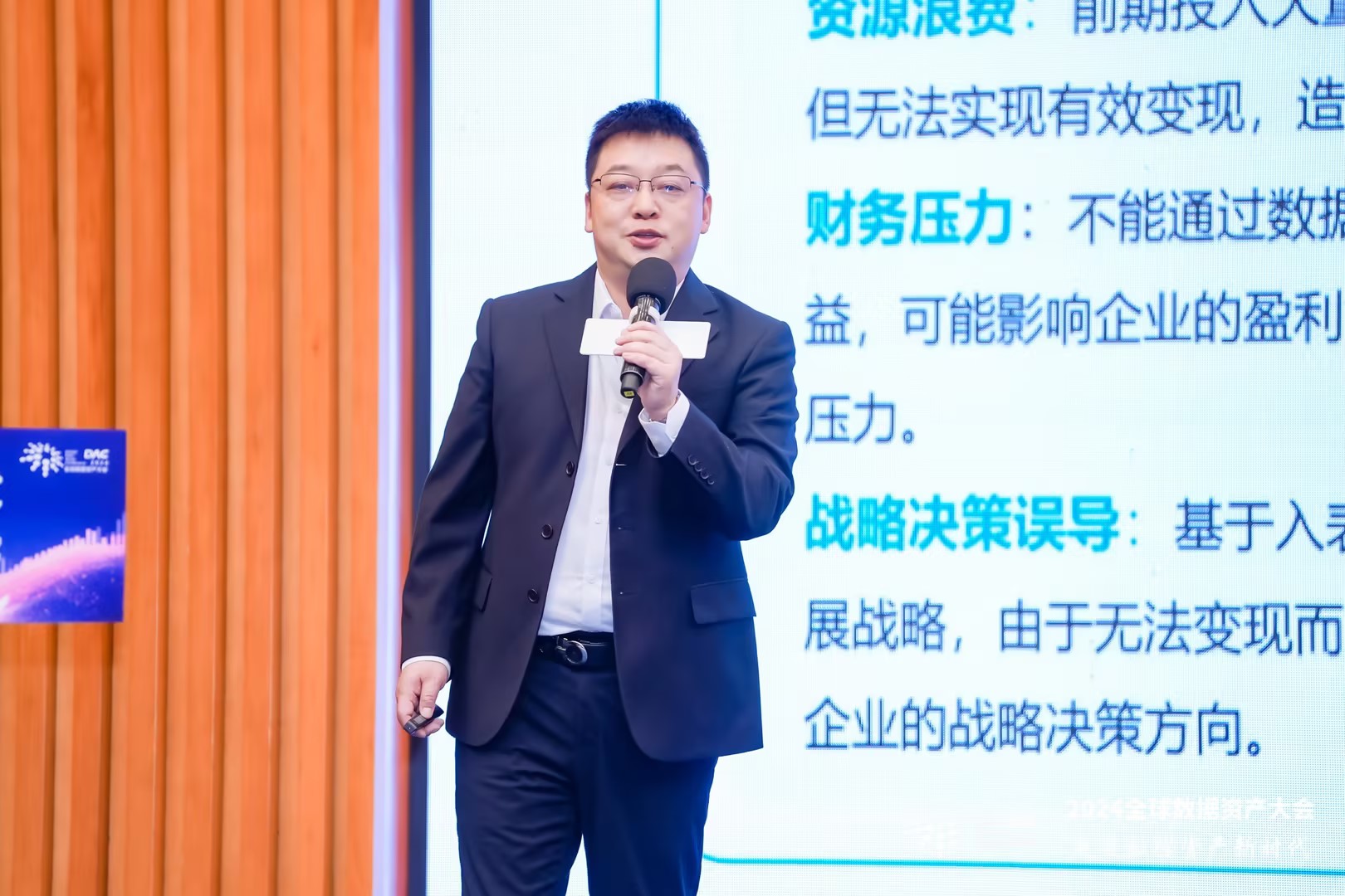 2024年,财政部《企业数据资源相关会计处理暂行规定》正式实施,进入数据资产化元年。Ebpay总经理毛大群在会上发表了题为《数据资产一站式服务,全方位助力数据入表》的主旨演讲,分享企业数据资产化实施路径,深刻剖析了当前数据资产入表实践中的痛点与挑战,如重融资轻建设、服务组织质量参差不齐、企业收益不达预期等问题,并针对性地提出了三大解决策略: