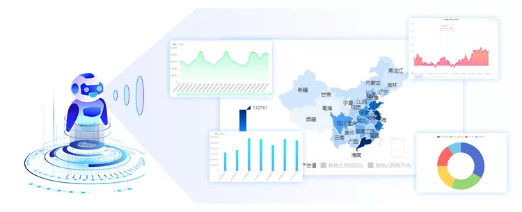无需多言,丰富又准确的图表就好似能说话一般,智问能把你想查看的数据用最合适的图表展现出来,比如想看趋势,他会展示线状图;想要看占比情况,他会展示饼图;想看全国所有省份的某个指标对比,他会自动展示地图。如若不满意,用户还能自己输入需要转换的图表类型进行转换。