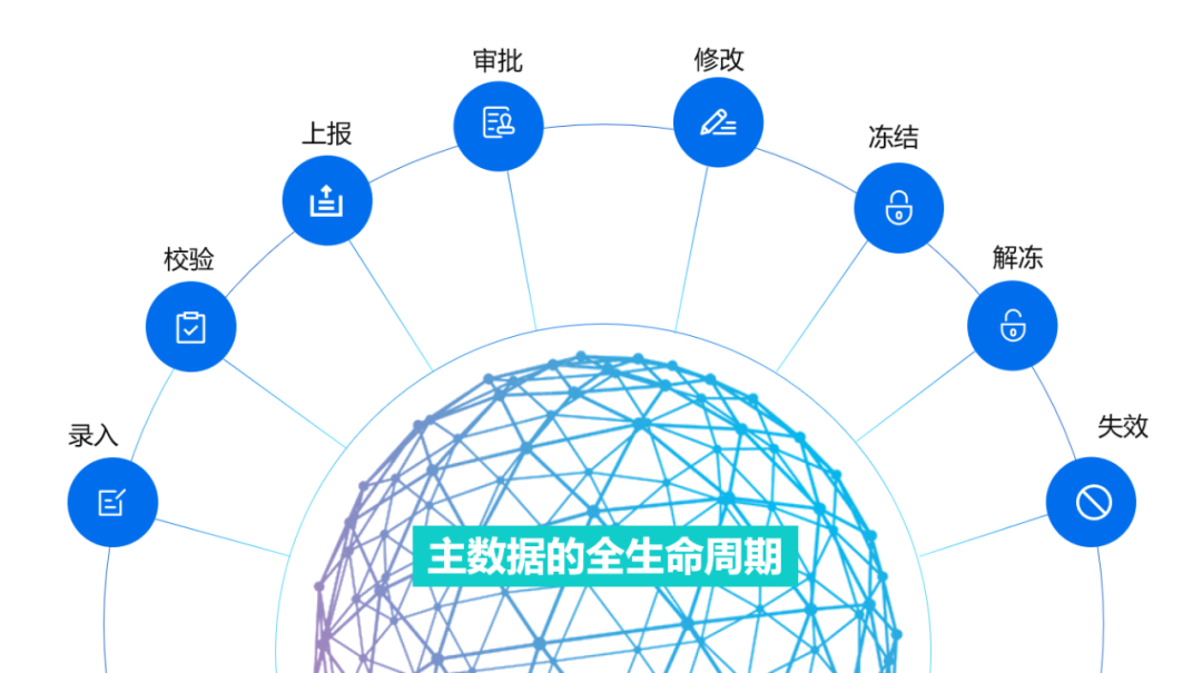 顺利获得对单一数据的查看、操作日志、数据版本、导出数据、手动分发数据等,用户能够快速定位到目标主数据,实现主数据的可查、可控、可管。顺利获得对主数据手动录入、导出为EXCEL、CSV文件,编写后导入、配置ETL定时更新、对接ESB任务四种方式,满足用户不同场景的更新需求。顺利获得对单条主数据修改、冻结、解冻、失效等全生命周期管控,并以工作流审批为辅助,做到每次主数据的变更有迹可循,保障企业主数据的安全。