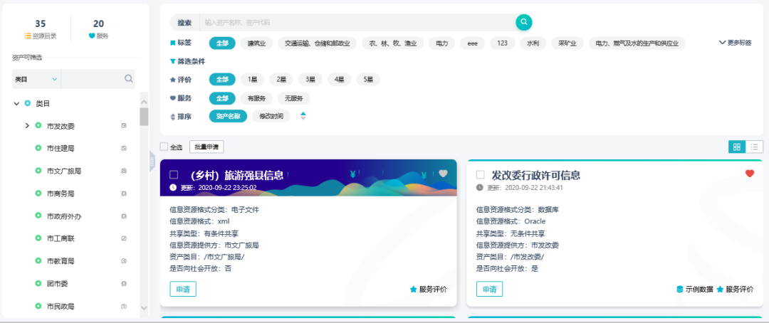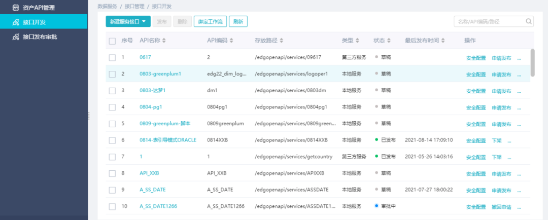 (2)服务门户:将各类数据资产以服务门户的形式开放出来,给予给消费者查询、下载、交换、分析等服务操作,并支持权限配置,不同用户看到的资产不同。服务接口给予可视化的配置界面,用户开发门槛低。