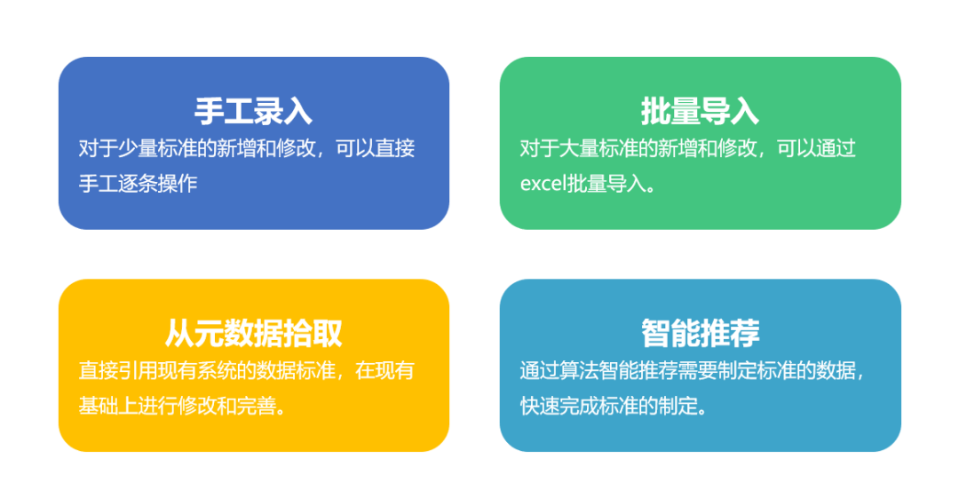 新建标准方式——标准智能推荐。在用户创建毫无头绪时,平台顺利获得词根结合元数据,向用户智能推荐需要定制标准的数据,给用户一个推荐引导的作用,同时还可以给后期的