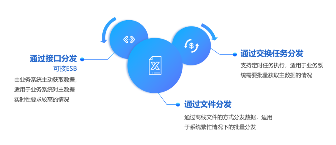(2)接口方式被动分发,由业务系统顺利获得接口的方式主动获取数据,主数据管理平台被动分发数据。