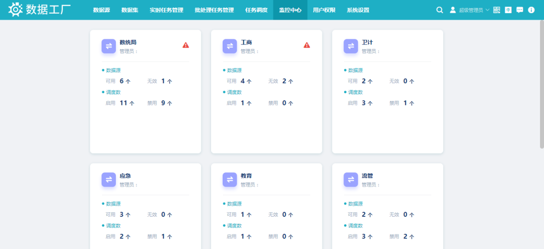 新增监控中心模块,分节点集中监控服务中心的数据传输流程,统计问题数据处理状况,可视化预警实时数据问题,降低数据安全风险。保障传输流程的稳定性并实现异常问题可追溯、可定位。