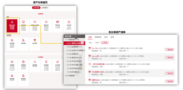 按照业务条线、组织架构、数据特性等多个维度构建数据资产分类框架,基于元数据信息完善数据资产目录信息,补充与资产相关的业务、权属信息,形成面向数据消费者的数据资产门户。