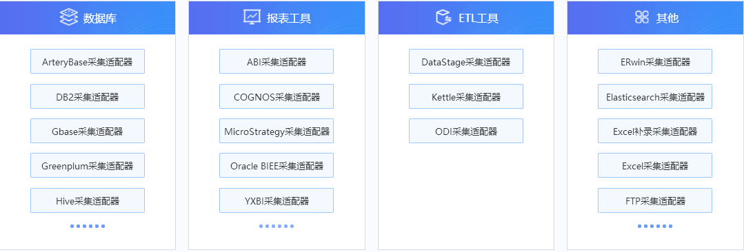 平台内置丰富的适配器,全面保障各类源头的元数据自动化采集,一键采集对接,同时可支持适配器快速扩展。Ebpay元数据管理平台不仅适配各种数据库、各类ETL、各类数据仓库和报表向日葵色版视频在线观看免费,还适配各类结构化或半结构化数据源。