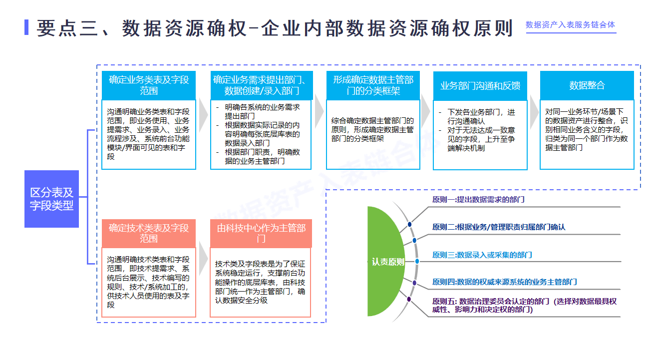 第三还要讲企业内部的确权,企业确权是针对独立法人进行的确权,数据是企业的,但是企业拥有它最后怎么去落呢?在做财务管理时,固定资产的管理一定会有对应的卡片,它的归属部门的,同样的数据资产未来也要归属部门,做精细化管理,也是为了方便未来属主部门、主责部门维护管理所拥有的数据资产。