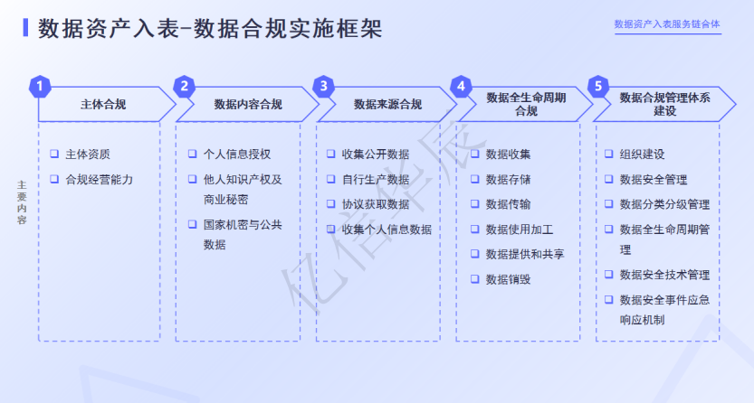 但未来无论你手上有多少有价值的数据资产,只要想让企业的资源去完成对外的,不管是研讨、买卖还是出境,就必须先完成数据合规,否则可能触及一些法律红线。数据合规是启动数据资源的先决条件。在数据入表的政策背景下,也能看到数据入表的第一步也是数据合规,只有完成了合规,才能将数据在