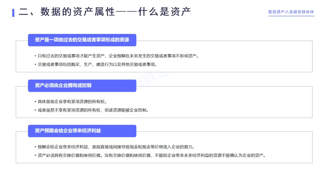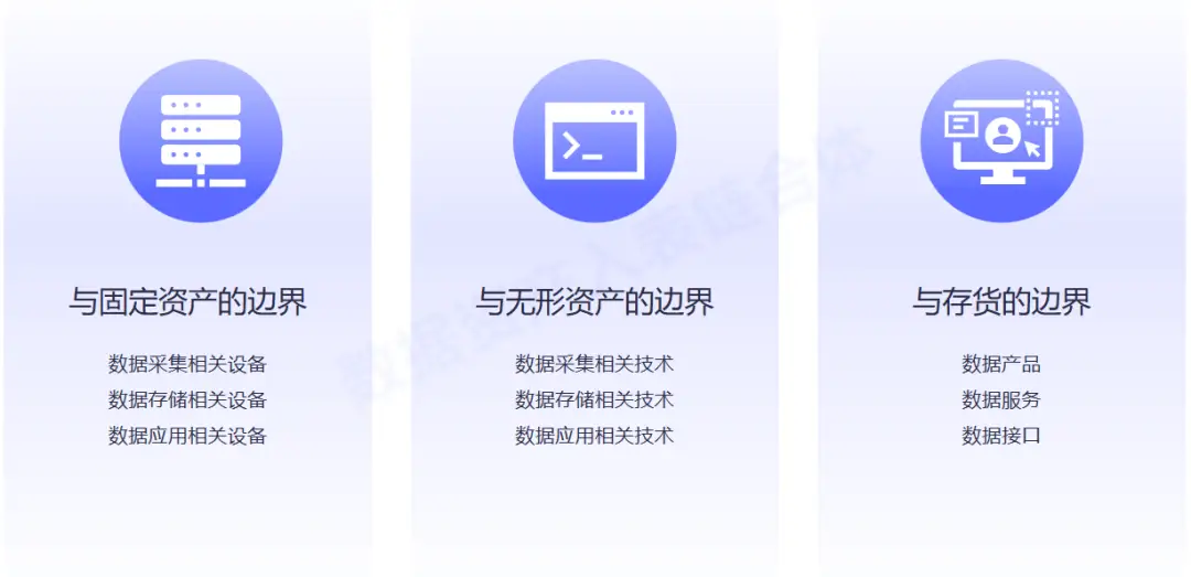 一是与固定资产边界,准确的说就是和数据相关硬件的边界在哪。数据的采集、数据的存储以及数据的应用都没有办法自己独立去进行,一定是依托于相关的硬件设备。相应的硬件是数据的载体,但它并不是数据本身。
