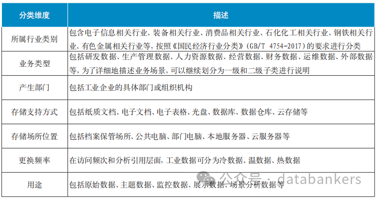 表 3 工业数据分类维度