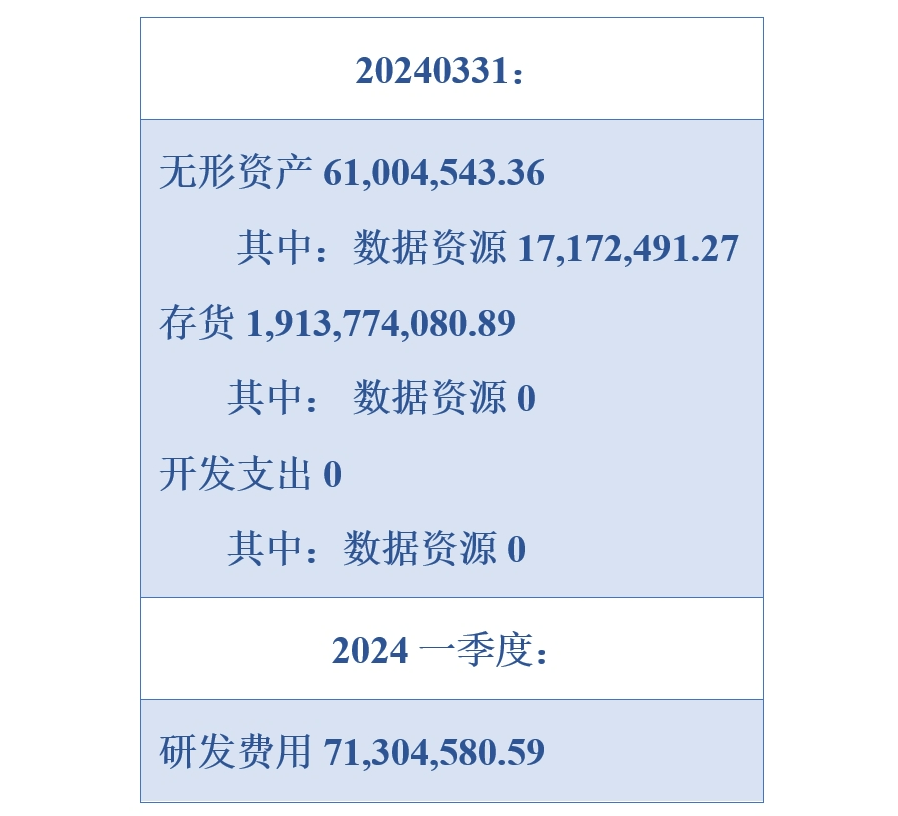据不完全统计,在各A股上市公司陆续披露的2024年第一季度报告中,共计24家[1]上市公司在无形资产、存货、开发支出等会计科目下披露了“数据资源”财务数据,这既是企业响应数据资源入表政策的持续实践,亦是在现行经济大环境下企业对“破卷之道”的有利探索。