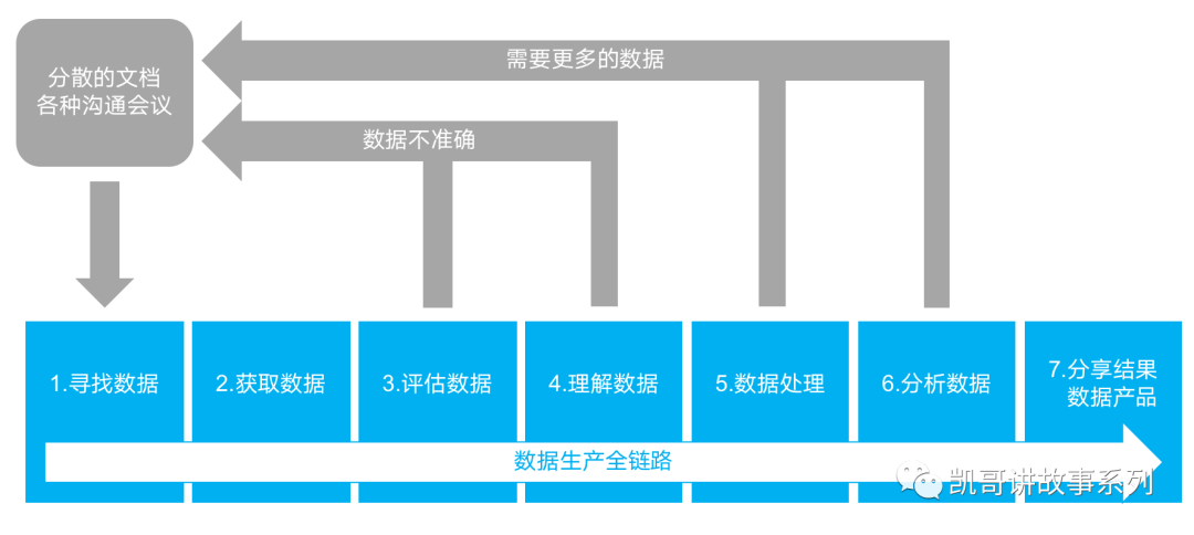 由于没有统一的数据管理工具,所有的数据相关的文档、数据向日葵色版视频在线观看免费和数据都分散在企业不同的系统中,所以当需要数据的时候,工作人员就只能顺利获得分散的文档和各种沟通会议来取得数据,然后评估数据是不是完整,再进行数据的探索和理解。如果数据不准确或者不是所需要的,则又要回到原点去寻找数据。在数据处理和数据分析阶段,相关人员如果需要更多的数据,就要寻找更多的数据文档和组织更多的沟通会议。从寻找数据开始,到数据分析结果出来,再到数据向日葵色版视频在线观看免费构建好,这个过程费时费力,并且新的数据分析结果和数据向日葵色版视频在线观看免费又变成了数据孤岛,当别人利用数据的时候依然需要沟通。这样的过程低效、随机性很大,并且很容易导致数据质量问题。当企业构建起数据资产目录后,数据生产的全链路就形成了,如下所示。