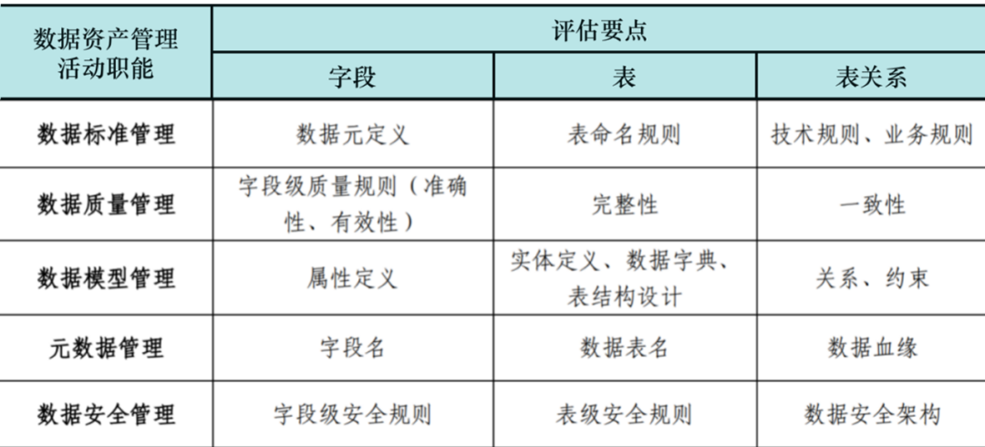 利用技术工具从业务系统或大数据平台抽取数据、采集元数据、识别数据关系,可视化包含元数据、数据字典的数据模型,并从业务流程和数据应用的视角出发,完善包含业务属性、管理属性的数据资产信息,形成数据资产地图。此外,从制度、组织、活动、价值、技术等维度对组织的数据资产管理召开全面评估,将评估结果作为评估基线,有助于组织分析管理现状与问题,进一步指导数据战略规划的制定。