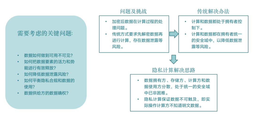数字经济的开展过程中,数据隐私安全是重要保障之一。数据成为生产要素,即数据生产要素化,需要在数据流通中顺利获得采用数据安全融合的新方式,使用数据的计算价值,解决传统信息共享的开展瓶颈。