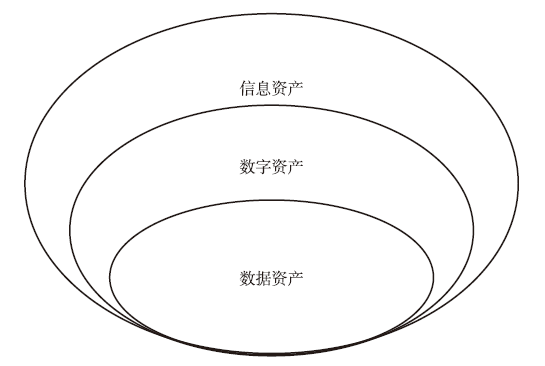 数字资产通常以电子形式存在,而信息资产可能以物理或电子形式存在。数字资产更加侧重于数字化的数据、软件和网络资源等内容,而信息资产则涵盖了更广泛的信息资源,包括了所有对组织运作至关重要的信息。数字资产是信息资产的一个子集,具有数字化的属性和特征,是信息资产的一种特殊形式,二者都具有价值,并且可以在数字化环境中进行交易和管理。数据资产和数字资产在经济活动中密切相关,相互影响和补充。数字资产的价值往往来自数据的生成、传输和分析过程,而数据资产的价值也可以顺利获得数字化转换变成数字资产。但数字资产的概念更广泛,除了数据外,还包括数字形式的财产、权利和资源。三者之间的关系如图1所示。