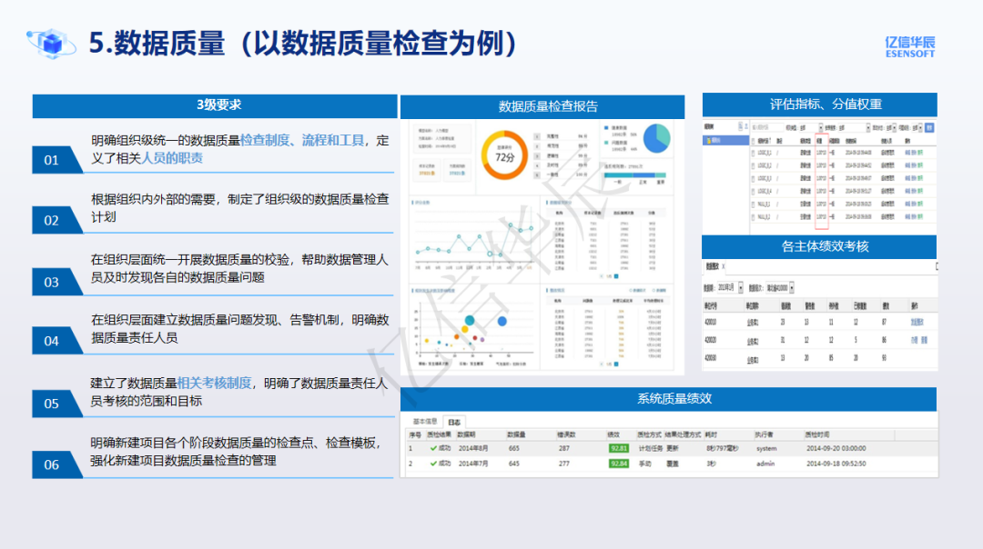 数据质量模块对于数据的重要程度不言而喻,甚至某种意义上来说,很多的数据治理的工作都是为了去提升数据质量(当然,是多方面的质量),以DCMM数据质量模块中的数据质量检查为例,那么Ebpay主要是遵循PDCA的原则,定义规则(规则的来源可以是数据标准,可以是行业标杆,可以是最佳实践)后进行周期性的质量检查,在检查的时候会明确考核绩效,有可以量化的权重及最终绩效,按照不同的考核主体(如系统维度、业务维度、部门维度)进行打分。