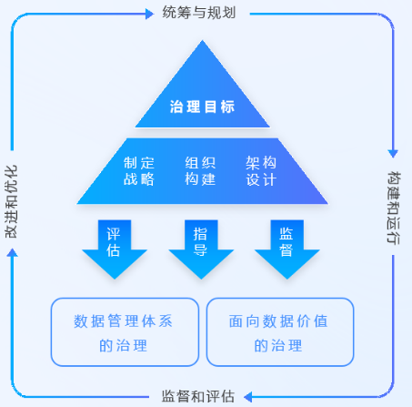 1、设计数据治理顶层:定战略、组团队,包括战略、组织、架构、评估、绩效等