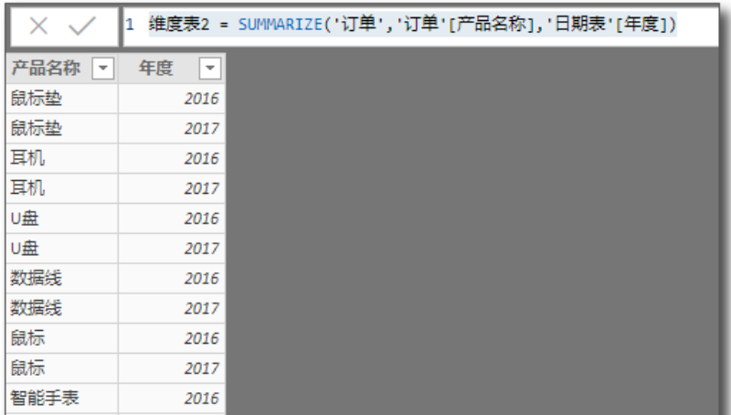 举个例子,假如2016年如果没有卖过智能手表,则上述的表达式不会有2016 智能手表这一行。