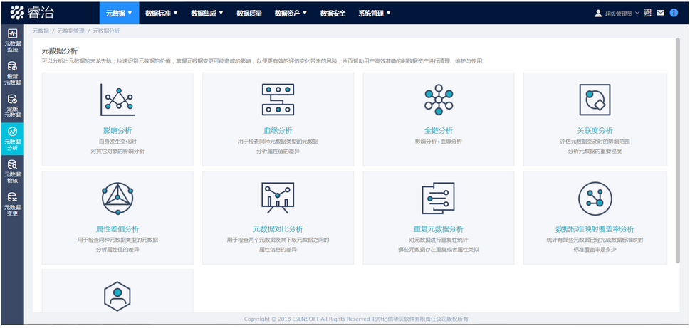 亿信元数据管理平台给予元数据质量检核功能,包括一致性检核、属性填充率检核和组合关系检核,是保障元数据质量的重要手段之一。