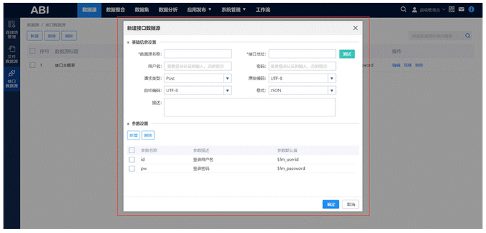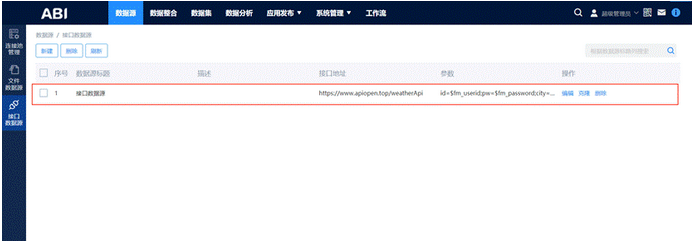 接口数据源:互联网上给予了很多对外公开的接口数据,为了方便用户快速提取互联网数据,ABI支持接口数据源,可顺利获得接口获取数据,并将数据转化成规整的格式。