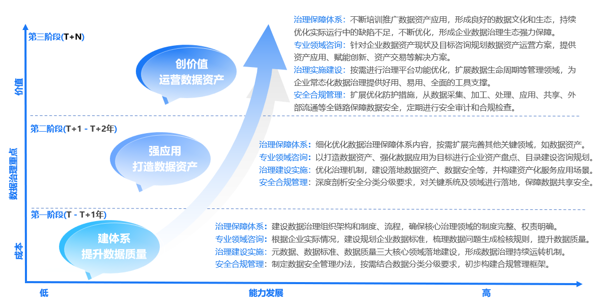 顺利获得充分调研分析,结合数据治理方法论及经验,帮助客户建立符合客户现阶段及未来的数据治理体系和建设路径,针对每阶段的建设目标、建设范围、建设成果进行建议规划,更好保障项目的建设效果及性价比。